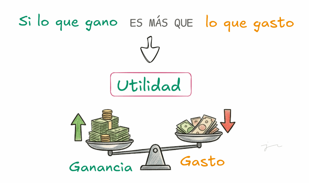 Es el dinero que te queda después de cubrir todos tus gastos. Dicho de otra manera, si al final de cada mes lo que ganas es mayor que lo que gastas, entonces estás generando utilidad.